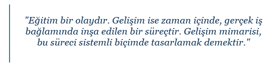 Gelişim ise bir süreçtir. Zaman içinde, gerçek iş bağlamında, tekrar ve refleksiyonla ilerleyen; hem bilişsel hem de davranışsal düzeyde iz bırakan bir dönüşüm yolculuğudur.